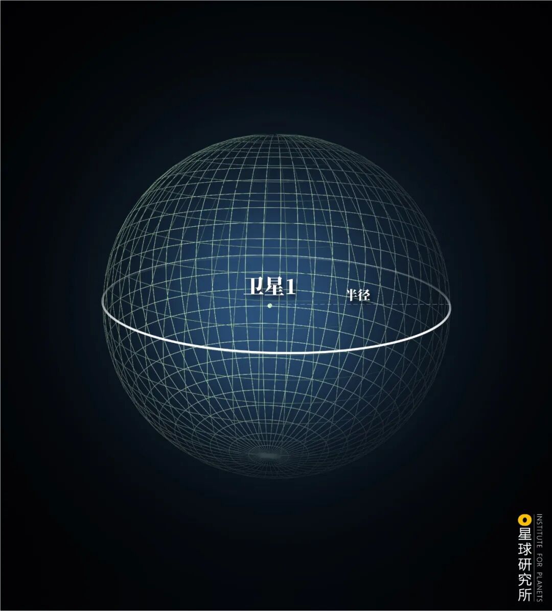 (光速约等于3×108m/s,一颗导航卫星确定的位置——球面,制图@郑伯容/星球研究所)