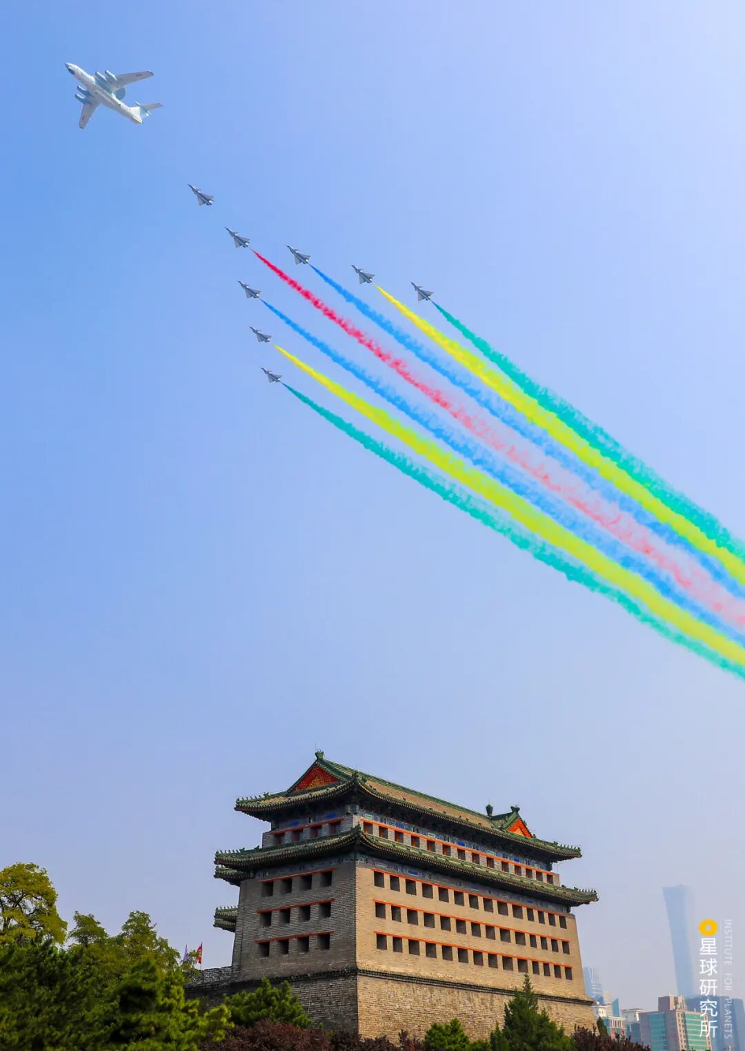 (2019年9月23日,国庆阅兵预演时的飞行梯队,摄影师@拾城 田卫涛)