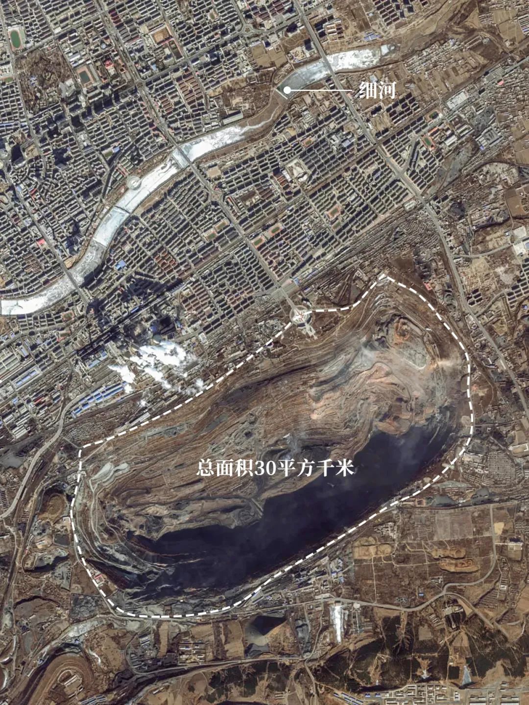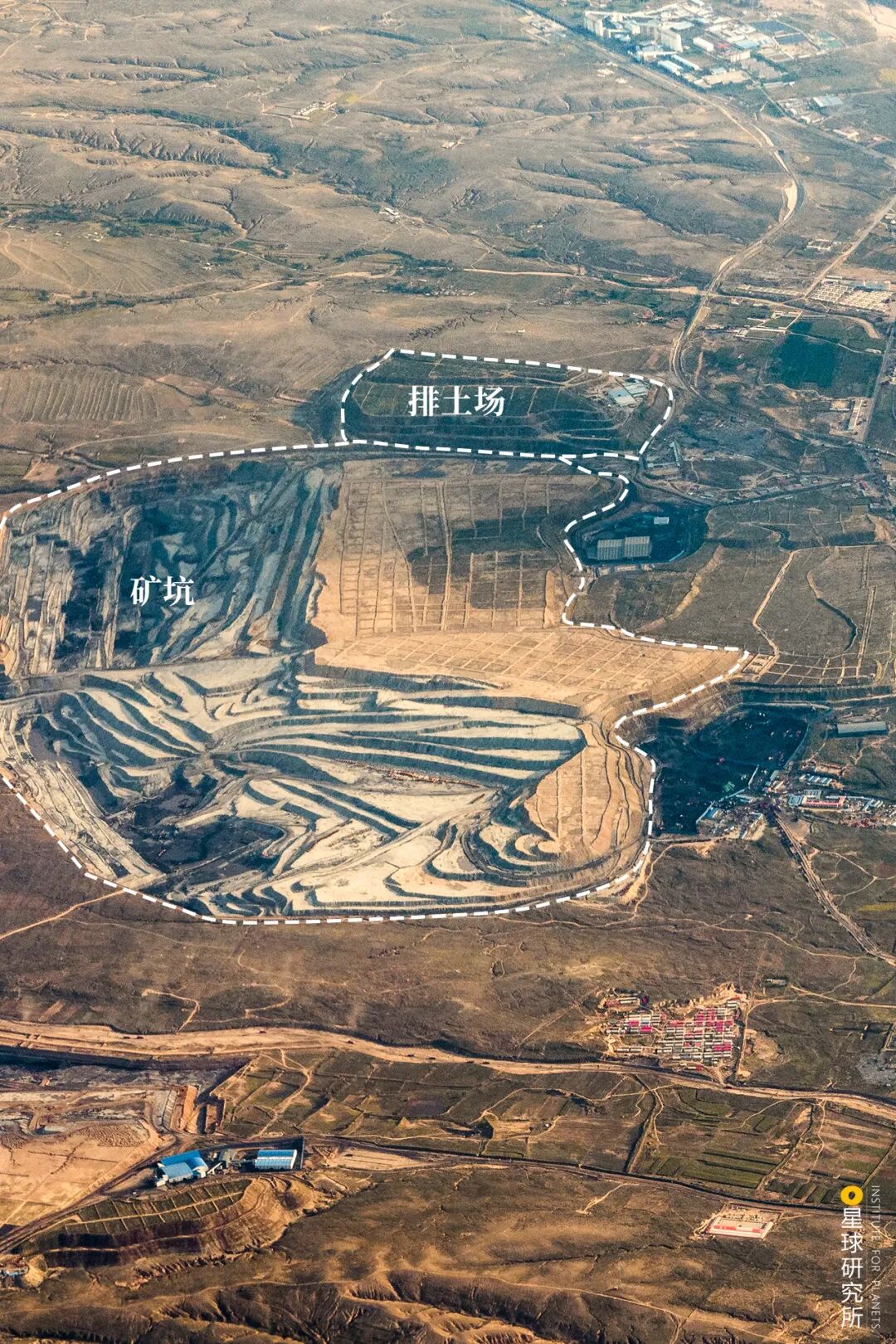 (内蒙古鄂尔多斯的黑岱沟露天煤矿,源自@Esri Image Map)