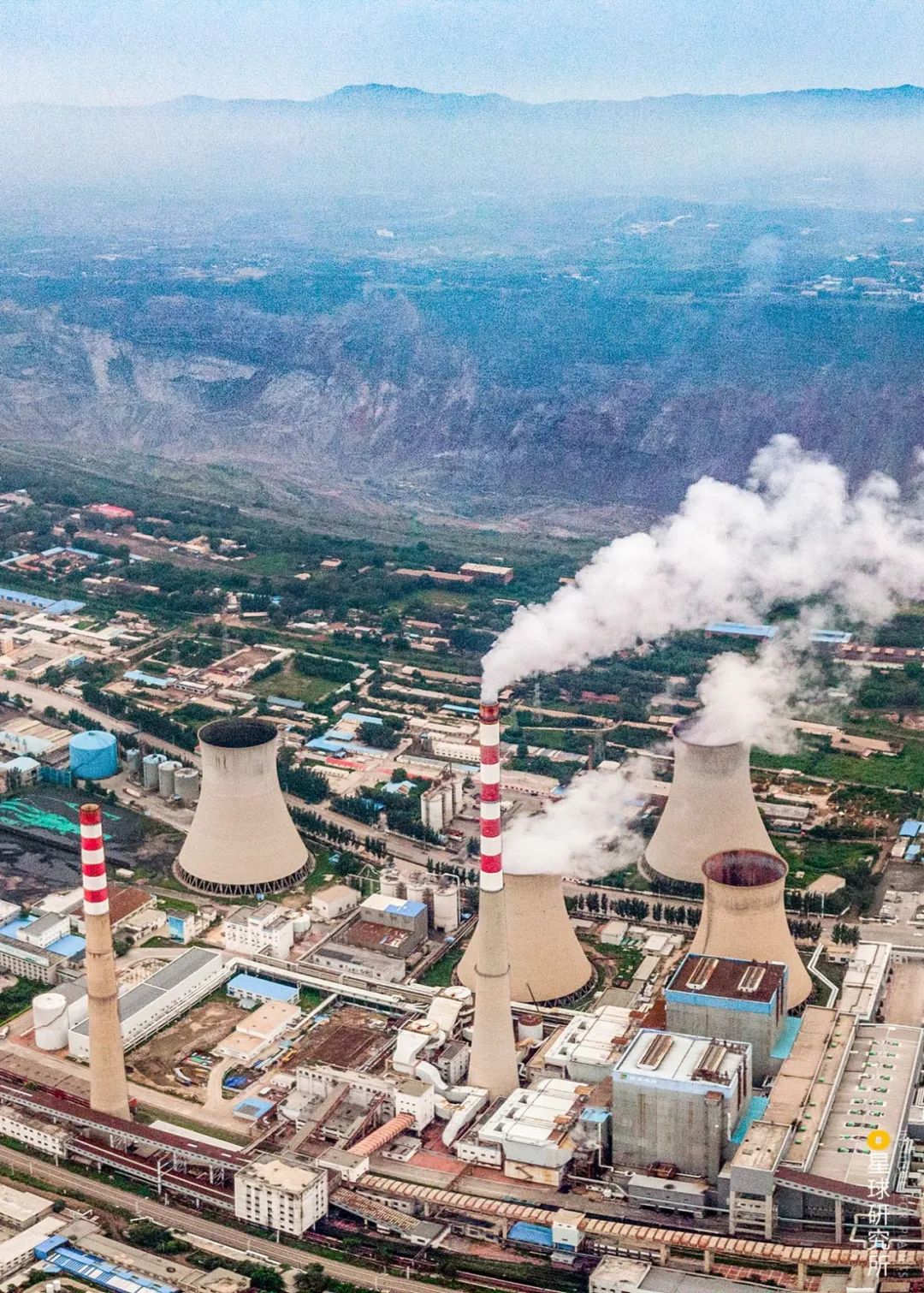 (从高空俯瞰内蒙古呼和浩特市的托克托火电厂,摄影师@陈剑峰)