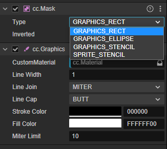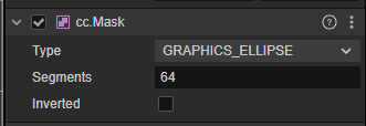GRAPHICS_ELLIPSE,椭圆遮罩,他有一个属性Segments曲线细分数,设置为3时表现为三角形,依次类推四边形、五边形、六边形、 ... 、圆形(64很圆)。