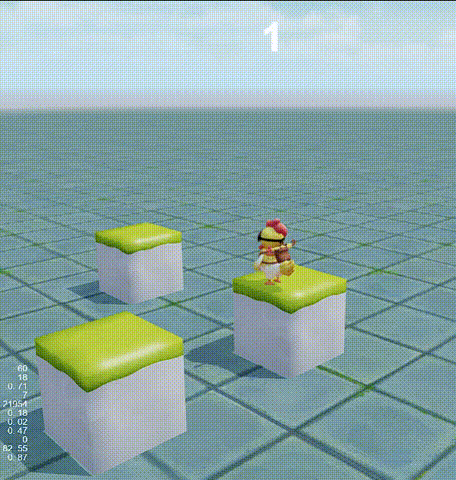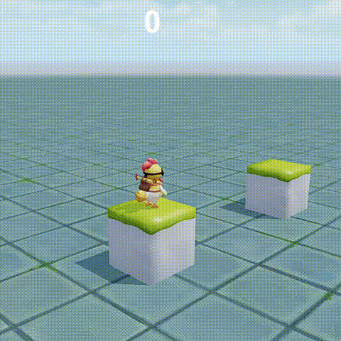 得分,每次成功跳跃(跳到下一块地块,不掉落)可获得1分。