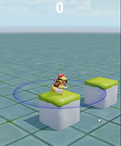 onTouchEnd() { if (this.gameover || !this.touching) return; this.player.getComponent(RigidBody).useGravity = false; this.touching = false; this.skillRangeIndicator.hideSkillRangeIndicator(); this.jumping = true; this.player.getComponent(SkeletalAnimation).crossFade("anim_rig_fly"); tween(this.player).by(this.jumpTime / 2, { worldPosition: this.dir.clone().multiplyScalar(this.radius / 4).add3f(0, this.jumpHeight, 0) }) .by(this.jumpTime / 2, { worldPosition: this.dir.clone().multiplyScalar(this.radius / 4).subtract3f(0, this.jumpHeight, 0) }).call(() => { this.player.getComponent(RigidBody).useGravity = true; this.player.getComponent(SkeletalAnimation).crossFade("anim_rig_idle_2"); this.jumping = false; if (!this.isGameOver()) { this.setScore(this.score + 1); this.createFloor(); } else { this.gameover = true; find("Canvas/Button").active = true; this.player.getComponent(SkeletalAnimation).crossFade("anim_rig_fall_into_water_die"); } }).start();}