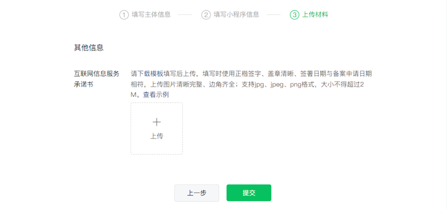 需要上传“互联网信息服务承诺书”,需要签名+手印,模板链接可在文末获取。