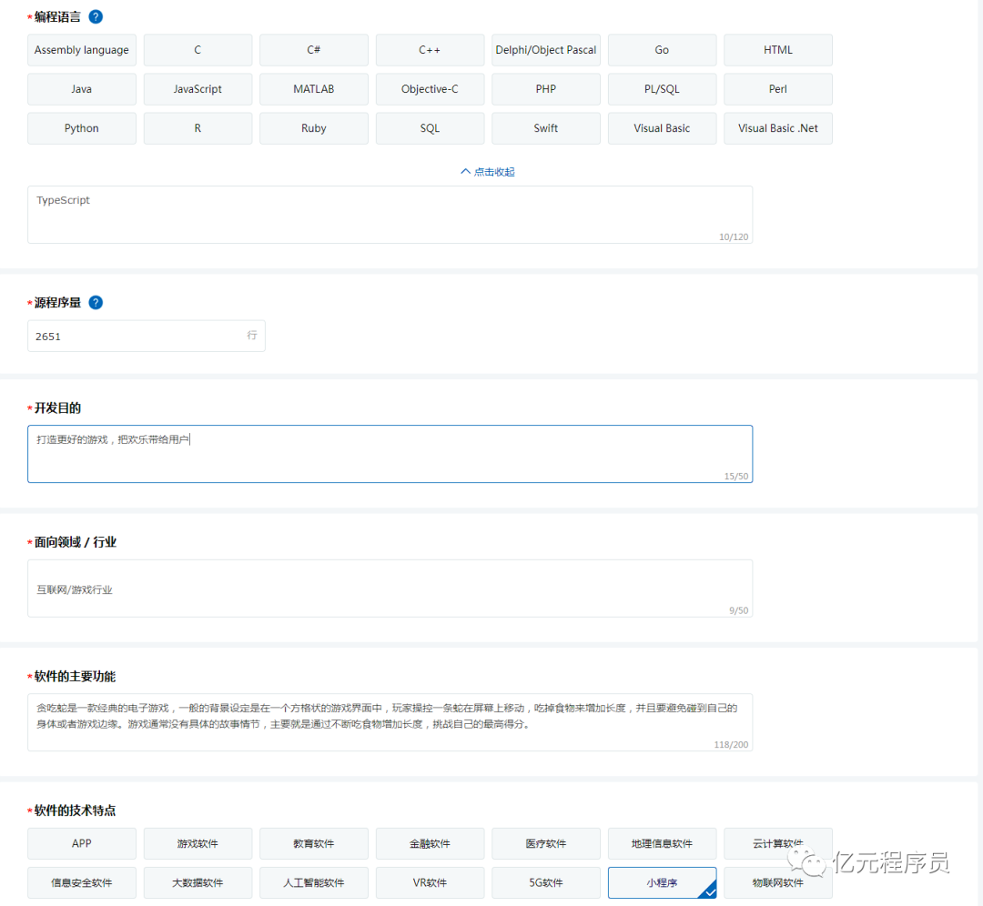 软著申请模板可以关注"亿元程序员"发送"软著"获取。