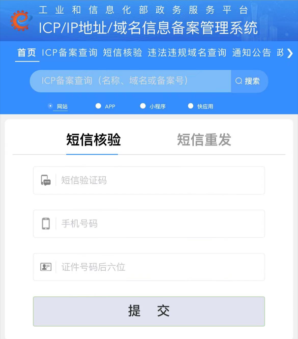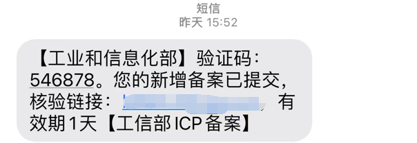 根据提示,需要前往工信部备案管理系统进行短信核验。