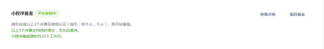 于是笔者连夜根据指引,完成微信认证,上传备案材料,认真填写备案信息,提交备案申请。