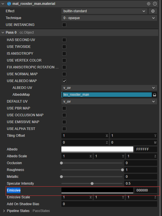 本文实现简单的闪白,我们可以借助Emissive改变贴图颜色。