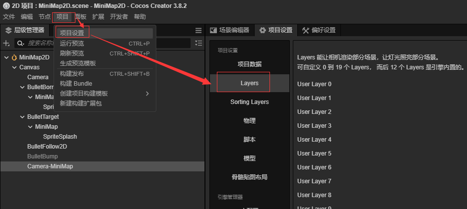 我们可以通过上方菜单栏->项目->项目设置->Layers打开Layer设置。