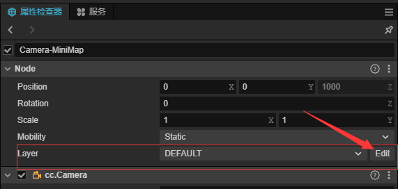 也可以通过场景中任意节点中的Layer栏的Edit按钮打开。