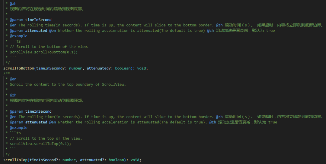 其中的关键API是ScrollView组件的scrollToBottom和scrollToTop方法。