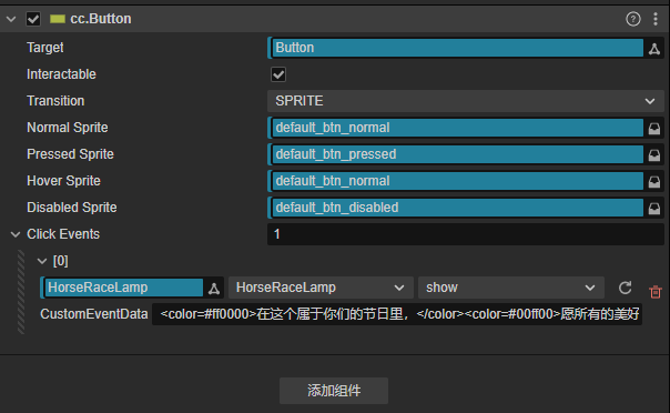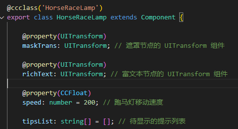 首先添加一个HorseRaceLamp组件,包括以下几个属性:
