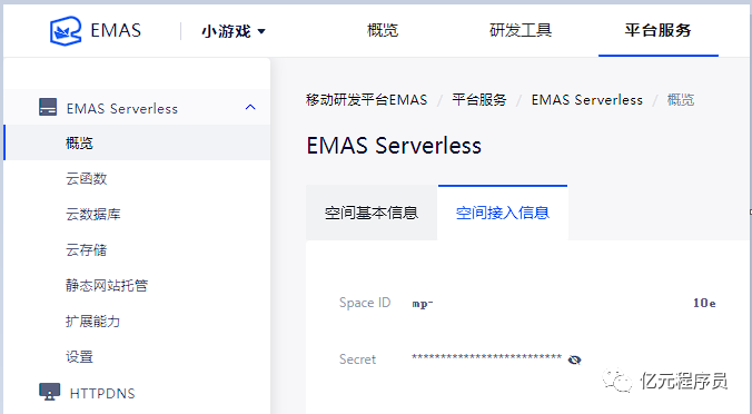 3.在EMAS后台添加小游戏的AppID和App Secret。