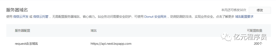在微信MP后台中开发-开发管理-开发设置-服务器域名-request合法域名中添加EMAS serverless域名: