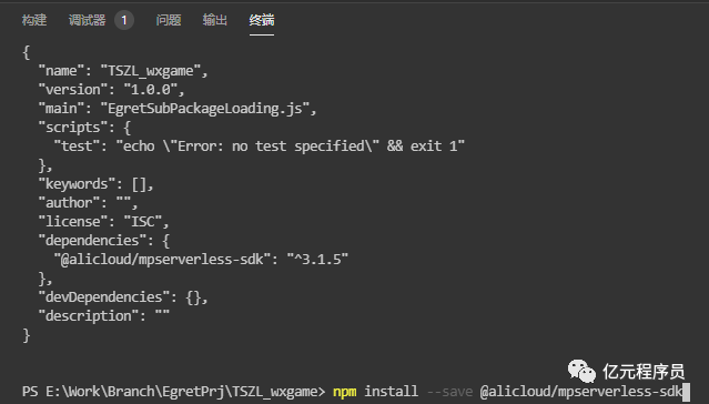 在终端中输入"npm install --save @alicloud/mpserverless-sdk":
