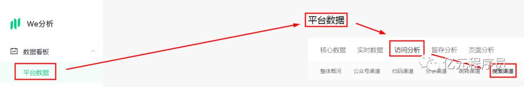 1.我们打开We分析后台-平台数据-访问分析-搜索渠道: