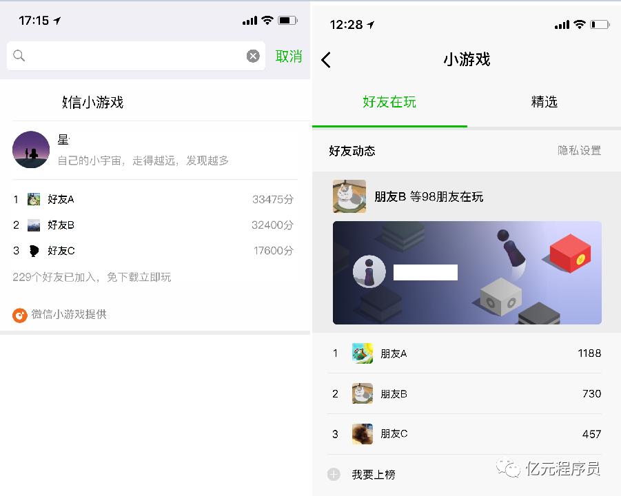 情况四:排行榜在搜索和小游戏中心的展现形式: