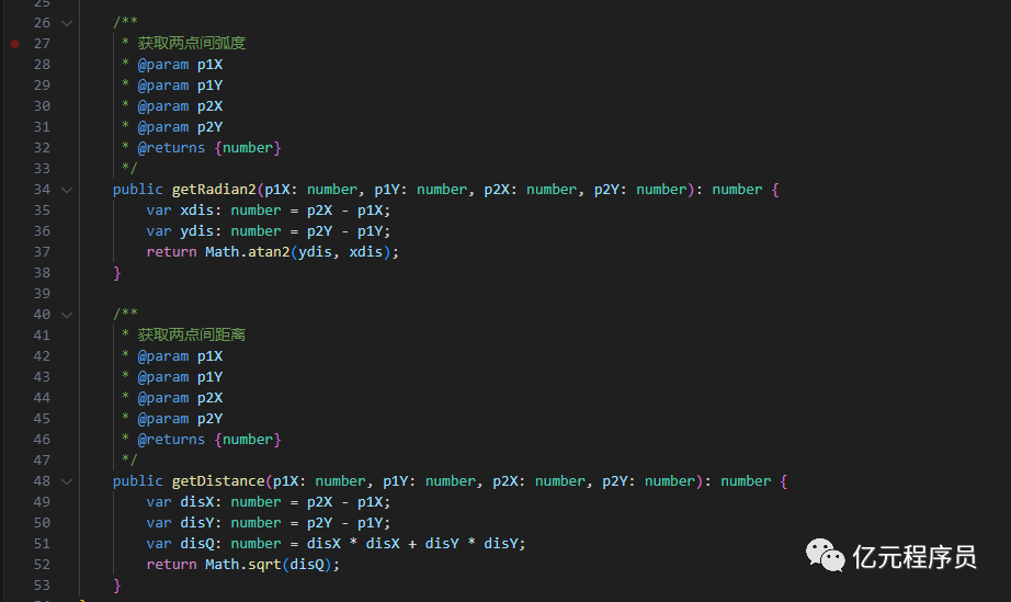 一些数学函数方法类,如计算两点距离,获取两点间的弧度,弧度和角度的互相转换等等。