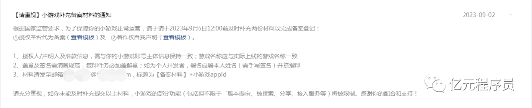 笔者在9月2号的时候收到了官方的要求补充备案材料的通知: