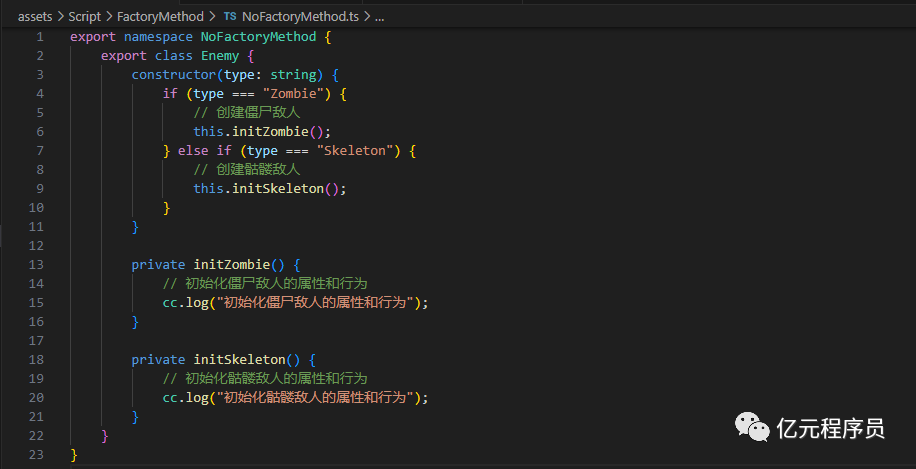假设我们正在开发一个2D游戏,其中有多种不同类型的敌人需要创建。在没有工厂模式的情况下,我们可能会创建一个函数来手动实例化这些敌人,如下所示: