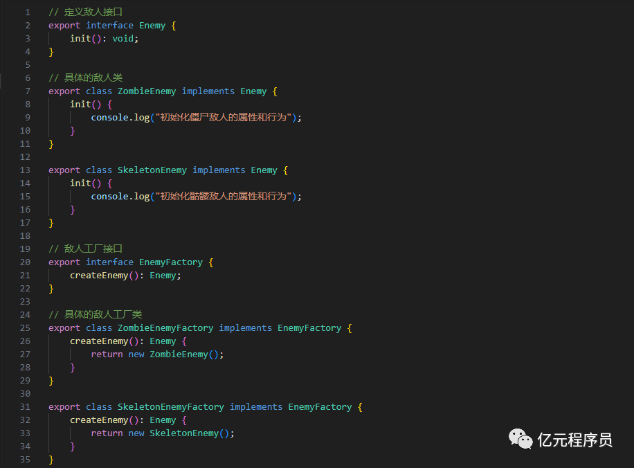 符合开闭原则:添加新的敌人类型只需要创建新的敌人类和相应的工厂方法,而不需要修改现有代码,符合开闭原则。
