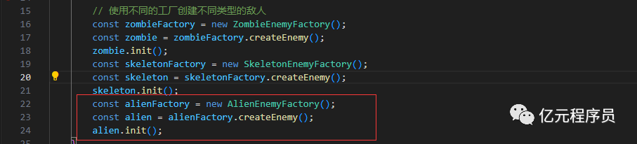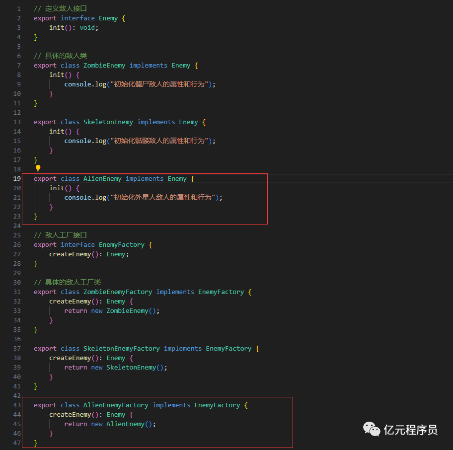 如果我们新增加一个外星人敌人,我们仅仅需要创建一个具体的外星人敌人类和具体的外星人敌人工厂: