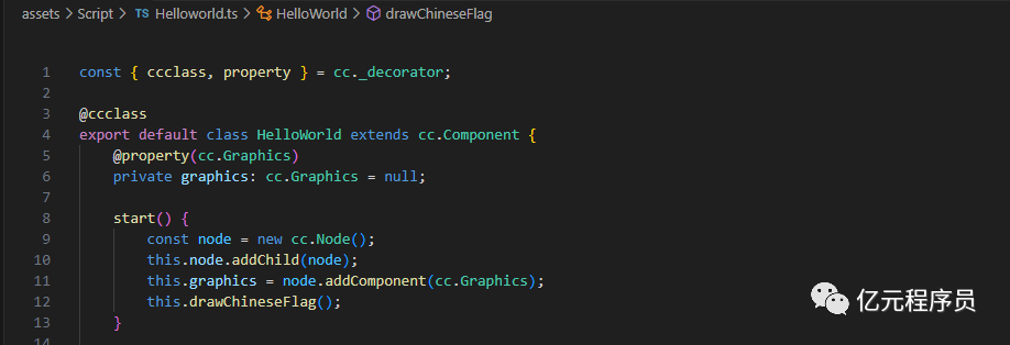 首先创建一个节点,并且添加cc.Graphics组件,用于绘制。