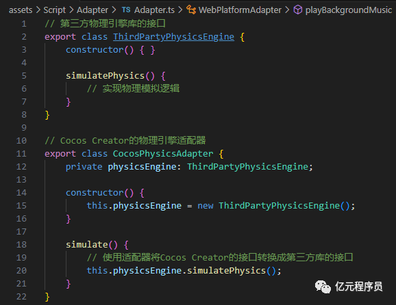 当你需要集成第三方库到你的Cocos Creator项目中时,往往需要编写适配器来处理不同库之间的差异。例如,如果你想使用一个第三方物理引擎,但其接口与Cocos Creator的物理引擎不兼容,你可以创建一个适配器类来将它们协调起来。