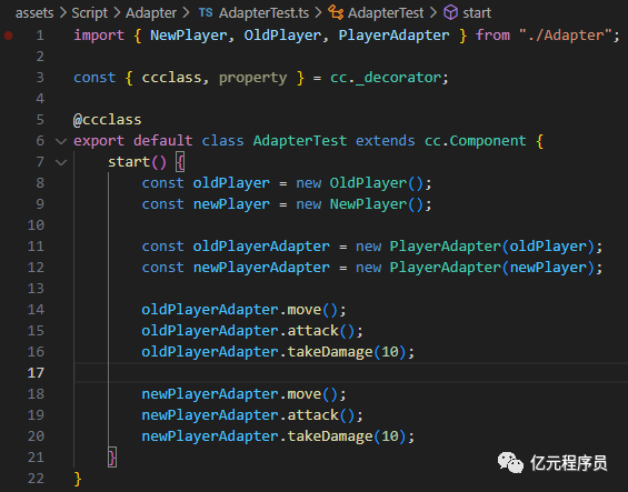 让我们通过一个简单的示例来演示如何在 Cocos Creator 中创建适配器模式。假设我们有两个不同版本的玩家角色类,分别是 OldPlayer 和 NewPlayer,它们具有不同的方法和属性。