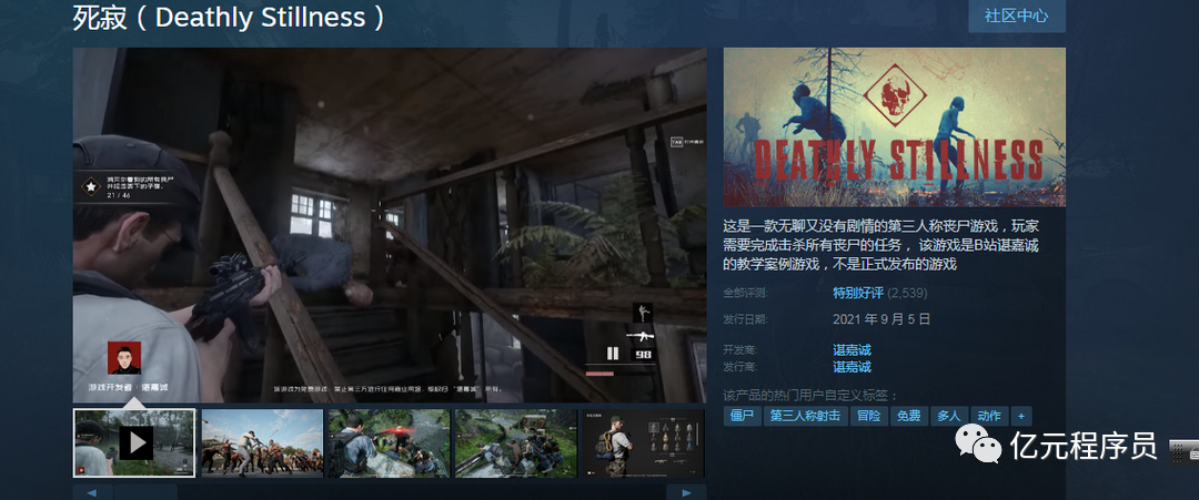例如,有一位独立游戏开发者谌嘉诚花费8300元在Steam商城购买资源,耗时17天从零到上架Steam一款名叫死寂的打丧尸的游戏。虽然游戏的玩法比较单一,凭借这UE4引擎、非常棒的游戏的体验和优质美术资源的组成,颇有3A大作的缩影,从而收获了数百万玩家的下载和游玩。