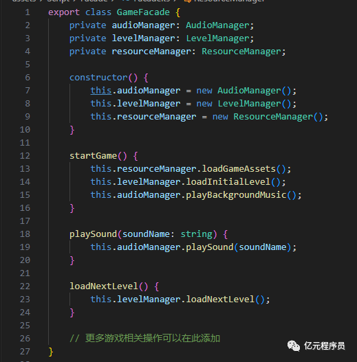 首先,我们需要创建一个游戏外观类,该类将封装游戏中常见的操作。