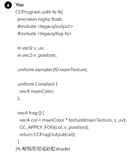 二话不说,我们把片元着色器片段丢给ChatGPT。