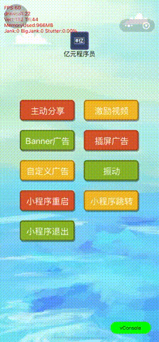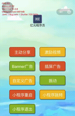 为了更好地演示效果,笔者用之前小游戏的资源简单搭了一个Demo小程序,简单但又不失优雅。