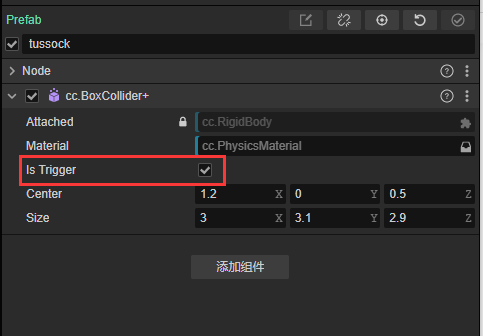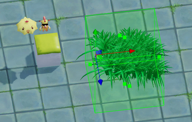 想要草可以产生触发事件,需要添加一下Collider,这里直接用BoxCollider,简单快捷: