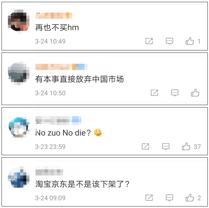 网友也纷纷表示,“再也不买H&M”了。
