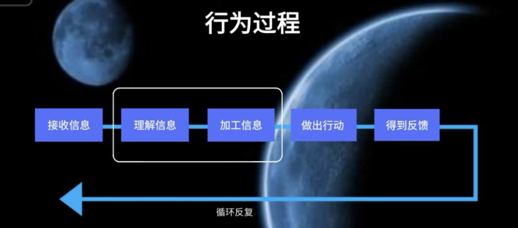 导致一个人的行为,一般是由接收信息、理解信息、加工信息、做出行动、得到反馈这样一个循环往复的过程。