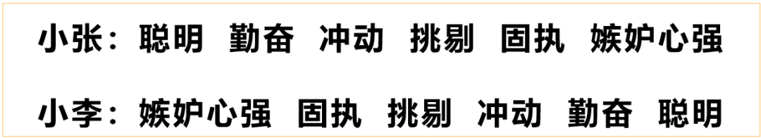 一个人性格特征出现的顺序很重要,光环效应注重第一印象,而后续信息会在很大程度上被消解掉。