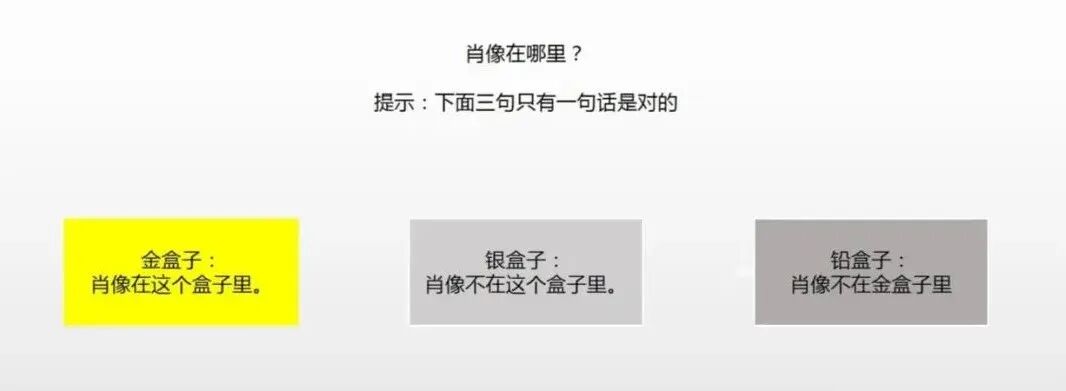“肖像不在金盒子里”,和“肖像在金盒子里”,这两句互相否定的话,一定有一句真话和一句假话。
