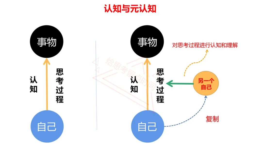 元认知,指最高级别的认知,即“即对认知的认知”,它能对自身的“思考过程”进行认知和理解,进而就整我们的思考方式和结果。