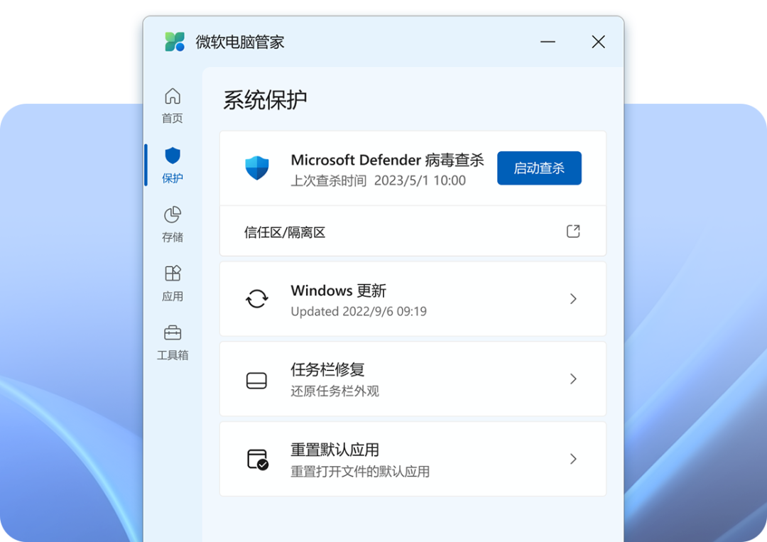 此外,微软电脑管家还内置了多种Windows小工具,并配备了便捷的桌面工具栏。这些工具可以提升用户的电脑使用效率,实现好用功能的一键直达。