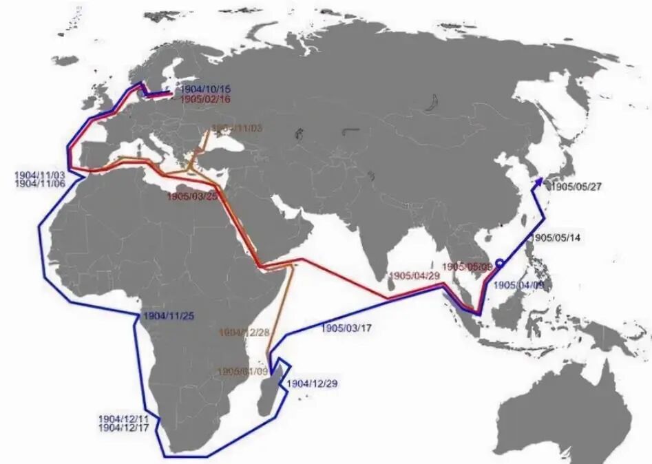 从波罗的海和黑海出发,前往远东作战,这期间需要途经哪些地方呢?当时可供沙俄波罗的海舰队选择的有两条路线: