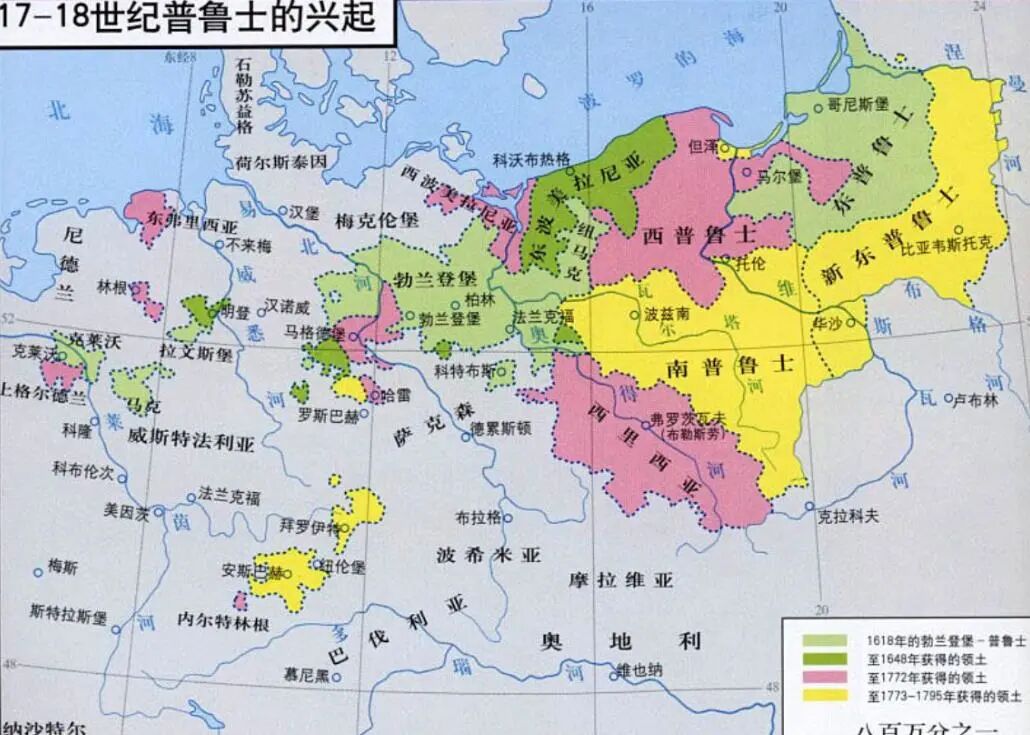 到了1701年,腓特烈在柯尼斯堡加冕称王,普鲁士公国晋升为普鲁士王国。这个时候霍亨索伦家族便将都城迁徙到了柏林,至于原来的普鲁士公国,则成了普鲁士省,而柯尼斯堡则成了普鲁士省的首府。