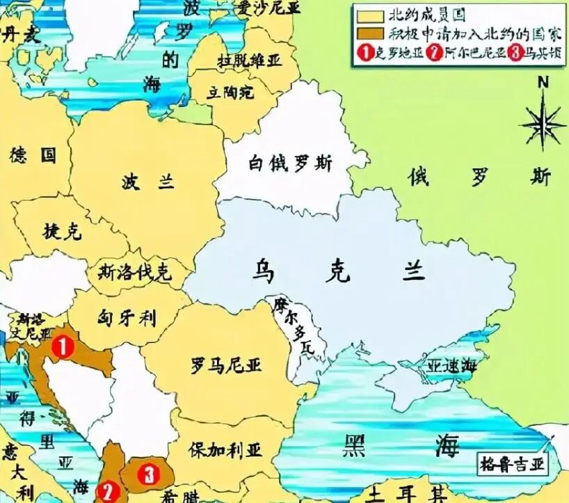2004年就更厉害了,波罗的海三国爱沙尼亚、拉脱维亚、立陶宛,这3个前苏联成员国,纷纷加入了北约。