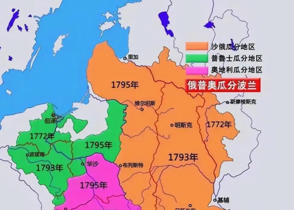 1772年,沙俄、普鲁士、奥地利这3个波兰的邻居,第一次瓜分波兰,夺走了波兰立陶宛联邦35%的土地和33%的人民。