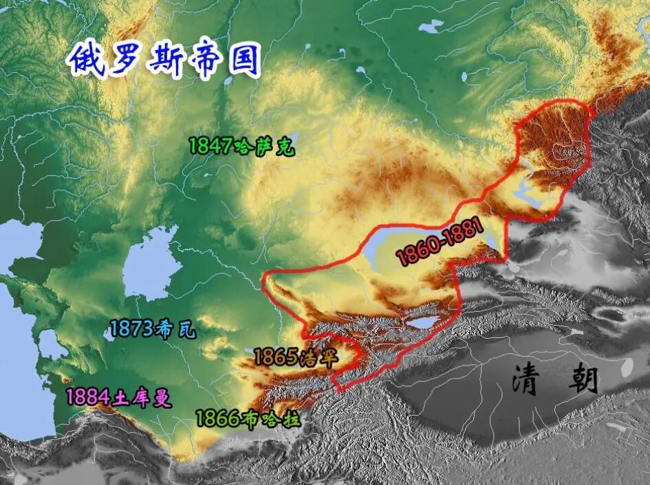 这还没完,他们还顺便修改了一下1864年签订的《塔城界约》,要求将塔城以东、斋桑泊周围的部分土地,也割让给沙俄。