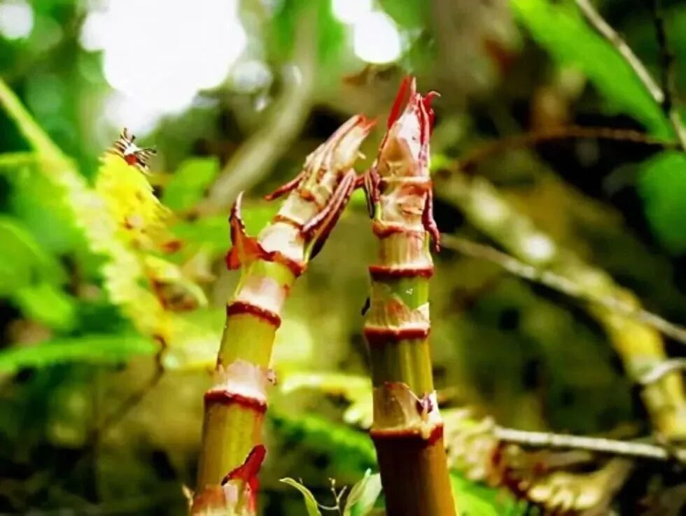 ②国内的原始森林里根系纵横交错,即使竹子也无法把根系扩展进去,就更别提什么虎杖了。它只能够在树林的靠近溪流树根较少的地方地方繁殖。田间地头的虎杖被人采作猪饲料、牛羊啃食,还有虫子祸害,剩下点根还常常被刨,能够苟延残喘就已经不错了。我家后院种了一棵,上次连下了好几天雨,天放晴一开院子门,吓得当场寒毛倒竖,以为外星生物入侵了,太吓人了,之前二三十公分,突然攀爬着院墙铺天盖地一般,果断给铲了,给周边月季绣球一条活路。