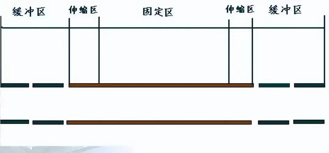 ⑤靠弯道解决热胀冷缩。轨道因为热涨变长了,弯道的弯曲半径就变大,因为道床不是固定的,轨道向弯曲处的外面移动,消化了轨道变长的量。弯道的弯曲半径非常大,热涨变长的量 ,转变在轨道圆弧往外侧移动的量很小。