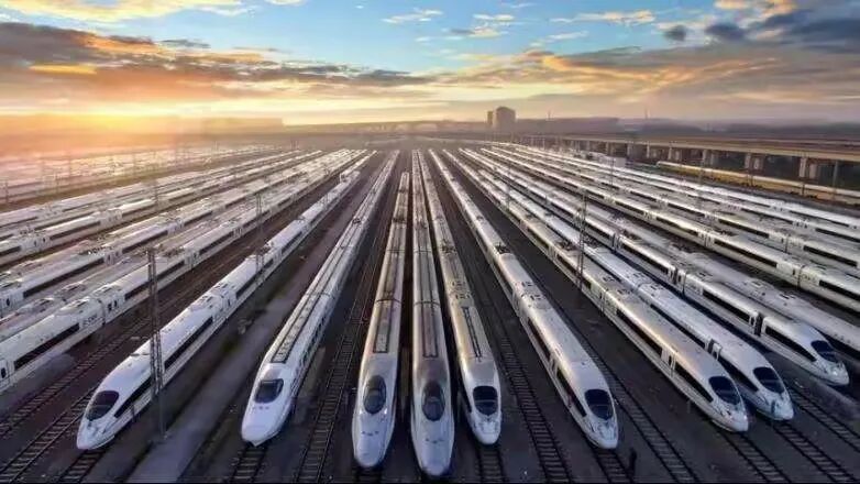 ②钢轨不是几百公里都无接口的,而是采用无缝钢材,以前钢轨都是12米一节配枕木道钉组成。现在则采用水泥枕整体道床,原来道钉改成夹压弹片增大柔韧度,铺轨机将百米整体道床一次成形。也就是接口百米长再焊接打磨成形尽管如此都要在一定距离留一缝的。轨垫采用塑胶减少热胀带来的伸缩走位。