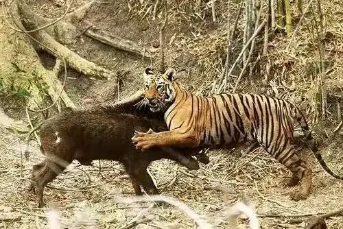 ③老虎遇到体型比较大的野猪在没有必胜把握的情况下是不会攻击的,野猪皮糙肉厚受点伤无所谓,轻伤很快自愈。而老虎是伤不起的,即使不因感染而死也会影响捕猎,所以它尽量避免受伤,即使最终能杀死野猪却不保证自己不受伤,猫科动物是很聪明的,家猫遇见超大的老鼠也不敢贸然攻击,有时会选择避让。