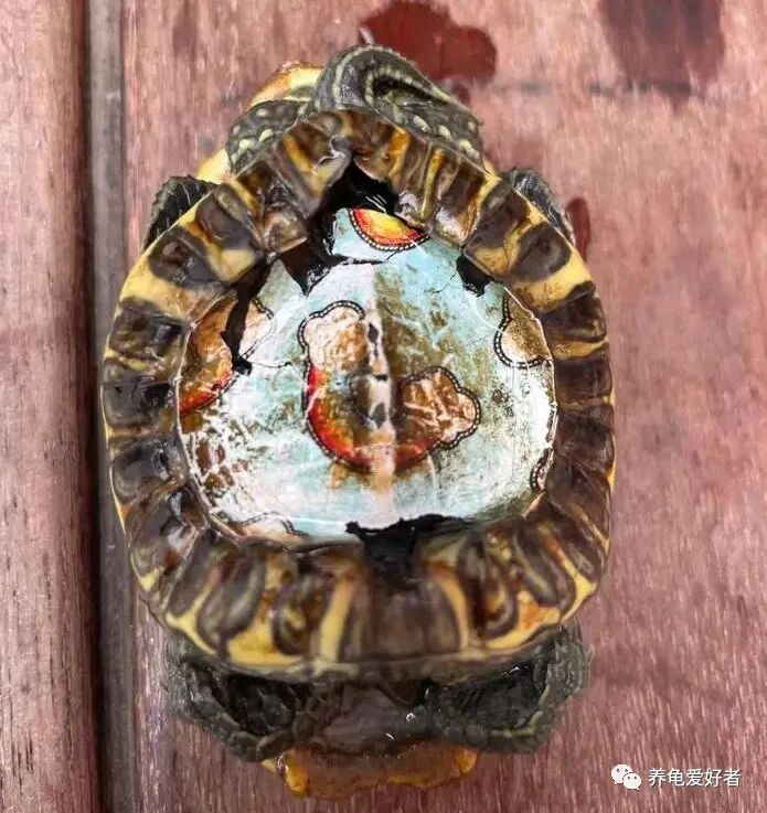 因为被打印上了精美图画,导致背甲盾片之间都粘连在一起了,龟需要生长,那么只能是其他的部位生长,背甲被限制。久而久之,就出现了如此的畸形。首先龟在遭受图画打印的时候已经受到了很严酷的对待,如果你把它带回家,能活下来的概率本身就很低。有些小龟友,自然是指年纪小了,养了这类龟觉得超级可爱,没多久就感觉龟没活力,很快就会死亡的。而且就算活下来了,能开食了,需要以后能变成正常龟,就得用小刀子将背甲上,盾片之间的粘连处划开,让背甲盾片有机会生长。